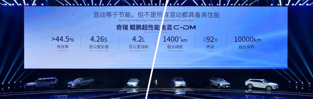 在电混领域,奇瑞混动技术已有18年技术积累,经历三代技术迭代,是混动赛道领跑者。奇瑞打造的第三代混动科技——鲲鹏超级性能电混C-DM,全域高性能,持续高节能,是对现有“技术围城”进行的全方位创新突破。