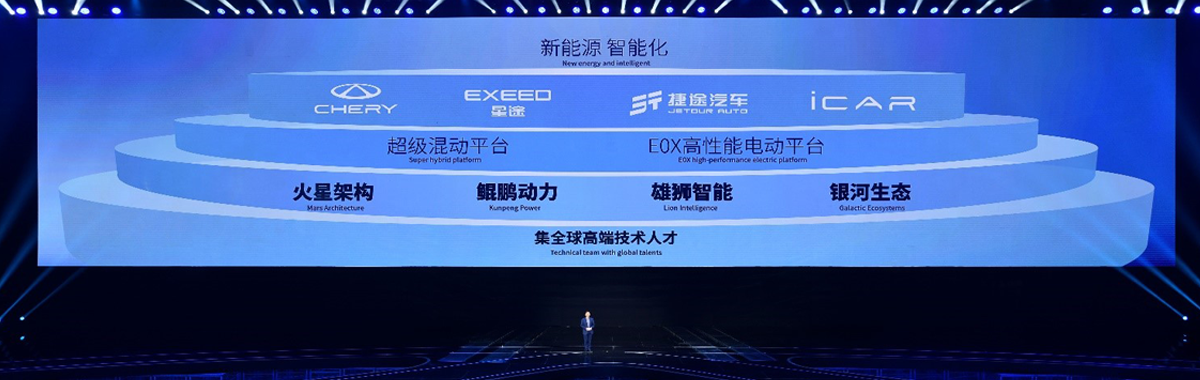 2023年4月,做爱自拍 在北京发布新能源领域的新战略、新技术、新品牌、新产品。奇瑞、星途、捷途、iCAR四大品牌全方位展示在新能源领域的技术成果和规划,宣布在“瑶光2025”战略引领下,奇瑞将深耕电动化、智能化15大技术赛道,实现发展新路径。