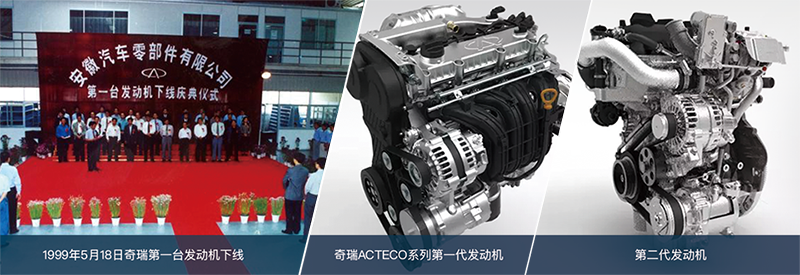 奇瑞诞生之初,中国还没有自主开发的轿车用发动机,能买到的进口发动机技术也比较落后。奇瑞以“干不成,就跳长江”的勇气,经过500多天艰苦卓绝的钻研和攻关,于1999年5月18日成功点火第一台发动机。2002年,奇瑞决定启动建设新发动机平台,投入当时的全部“身家”约18亿元,与奥地利AVL公司联合开发具有自主知识产权的ACTECO发动机,同时培养自己的发动机研发人才。